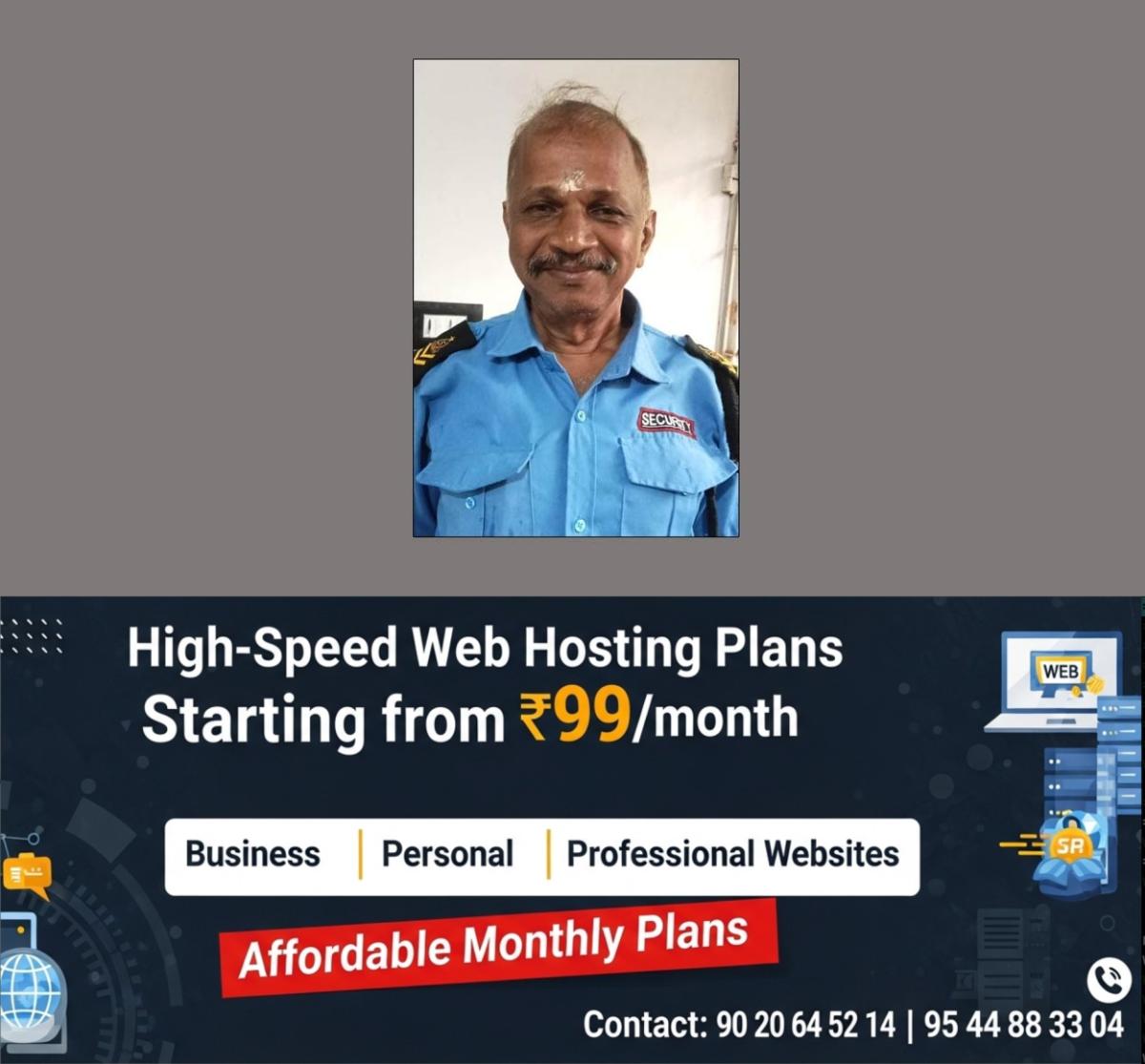സുരക്ഷാ ജീവനക്കാരനായി ജോലി ചെയ്തുവരികയായിരുന്നു അദ്ദേഹം.