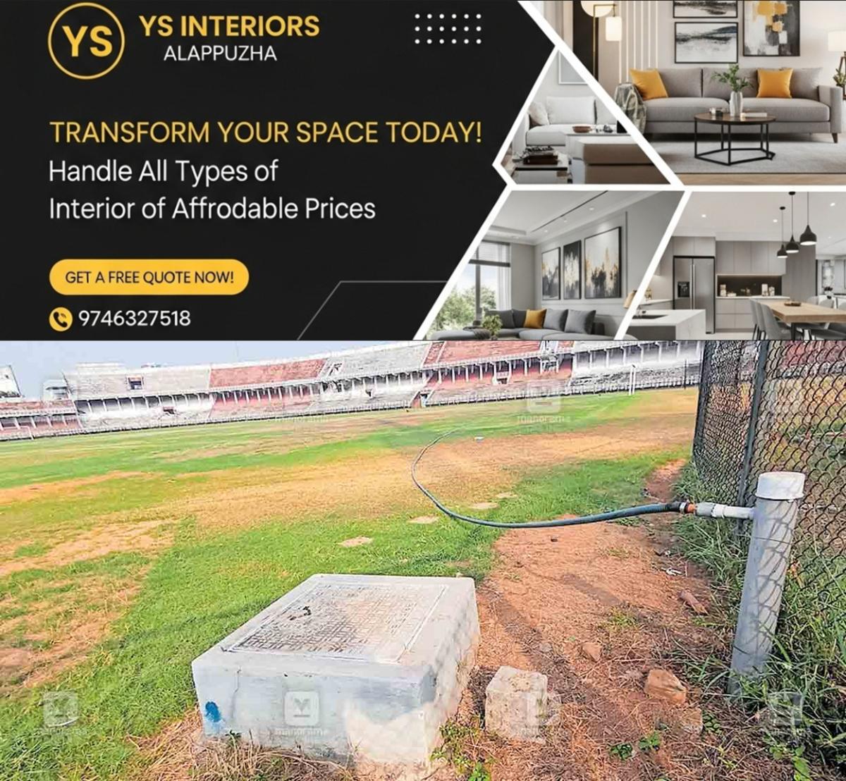 കോഴിക്കോട്∙ സ്റ്റേഡിയത്തിൽ മൈതാനം നനയ്ക്കാൻ പുതുതായി നിർമിച്ച കുഴൽകിണറിന്റെ പൈപ്പുകൾക്കും കേടുപാടു പറ്റി. കെഎഫ്എ കഴിഞ്ഞ സീസണിലാണ് സ്റ്റേഡിയത്തിലെ പുൽമൈതാനം നനയ്ക്കാൻ രണ്ടര ലക്ഷത്തോളം രൂപ ചെലവഴിച്ച് പുതിയ കുഴൽകിണർ നിർമിച്ചത്. മൈതാനം നനയ്ക്കാനായി ഇതിന്റെ പൈപ്പുകൾ ഉപയോഗിച്ചിരുന്നു. ഈ പൈപ്പുകൾക്കു കേടുപാടുകൾ പറ്റിയതോടെ ഇന്നലെ ടാങ്കർലോറിയിൽ വെള്ളമെത്തിച്ചാണ് മൈതാനം നനച്ചത്.