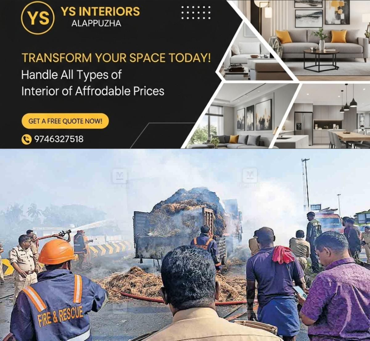 ആളിപ്പടർന്നുതുടങ്ങിയിരുന്ന തീ അഗ്നിരക്ഷാസേന എത്തി ഒരു മണിക്കൂറിലേറെ നീണ്ട പരിശ്രമം കൊണ്ട് അണച്ചപ്പോൾ വഴി മാറിയതു വൻ ദുരന്തം.