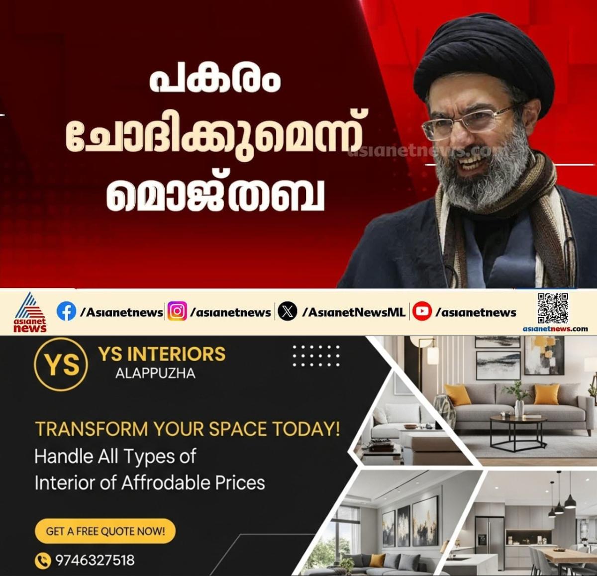 അമേരിക്കൻ- ഇസ്രയേൽ ആക്രമണത്തിൽ കൊല്ലപ്പെട്ട ഇറാനികളുടെ ചോരയ്ക്ക് പകരം ചോദിക്കുമെന്ന് പുതിയ പരമോന്നത നേതാവ്; മിനാബിലെ പെൺകുട്ടികളുടെ സ്കൂളിലെ ആക്രമണമടക്കം എടുത്ത് പറഞ്ഞായിരുന്നു മൊജ്തബയുടെ സന്ദേശം … FacebookTwitterWhatsAppTelegram